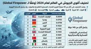 ترتيب أقوى جيوش العالم وفق مؤشر القوة العسكرية العالمي (Global Firepower)