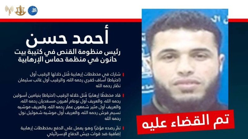 أعلن الجيش الإسرائيلي، في بيان رسمي، أنه نفذ عملية استهدفت أحمد حسن، الذي وصفه بأنه مسؤول منظومة القنص التابعة لكتيبة بيت حانون في حركة حماس.
