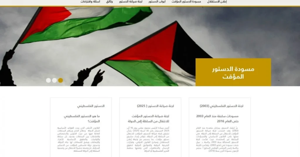 0 آخر الأخبار 10 فبراير 2026 فبراير 10, 2026 لجنة صياغة الدستور تطلق المنصة الإلكترونية للدستور الفلسطيني – رابط أعلنت لجنة صياغة الدستور، إطلاق المنصة الإلكترونية للدستور الفلسطيني المؤقت اضغط هنا وأشارت في بيان... Continue reading